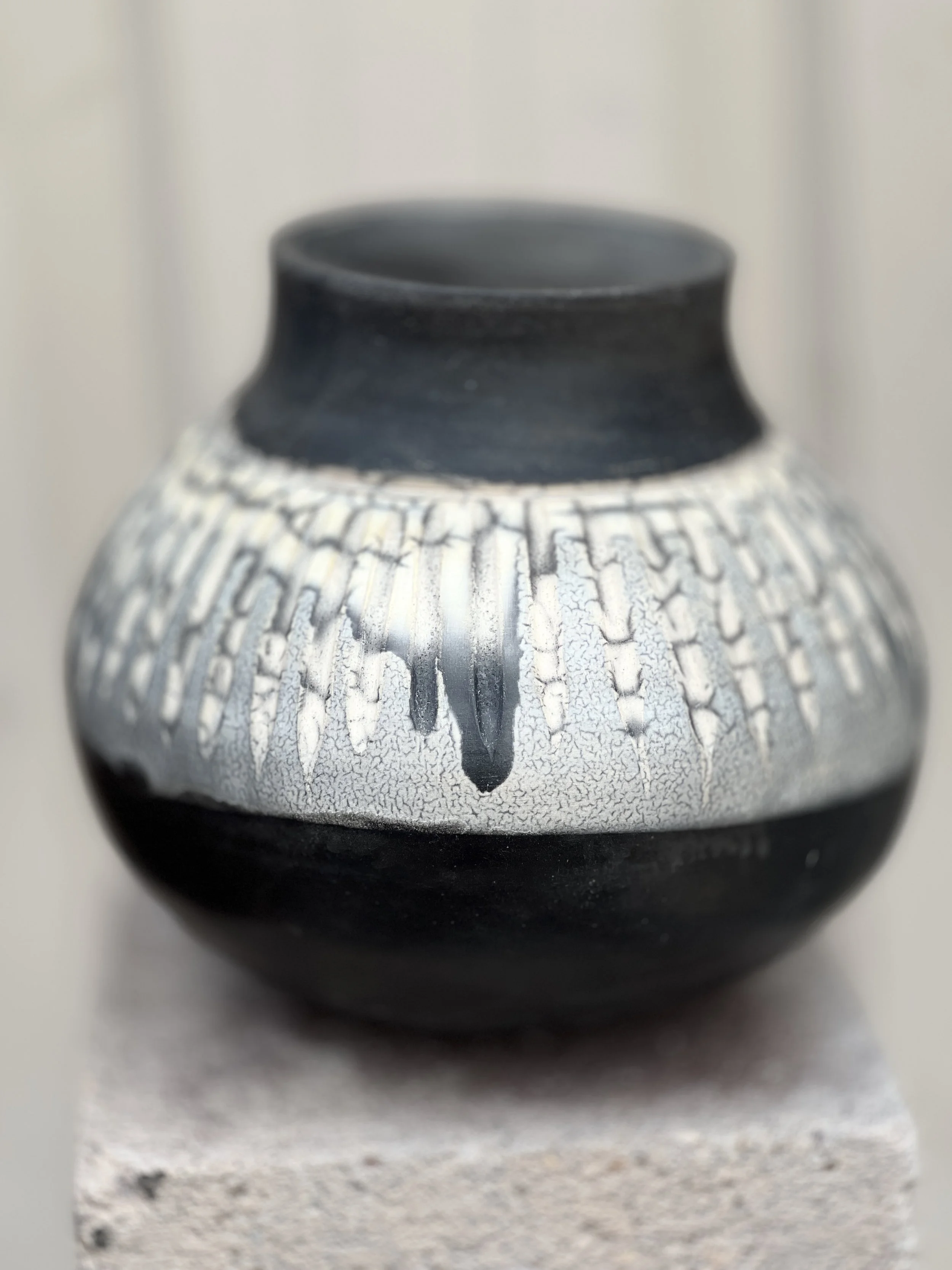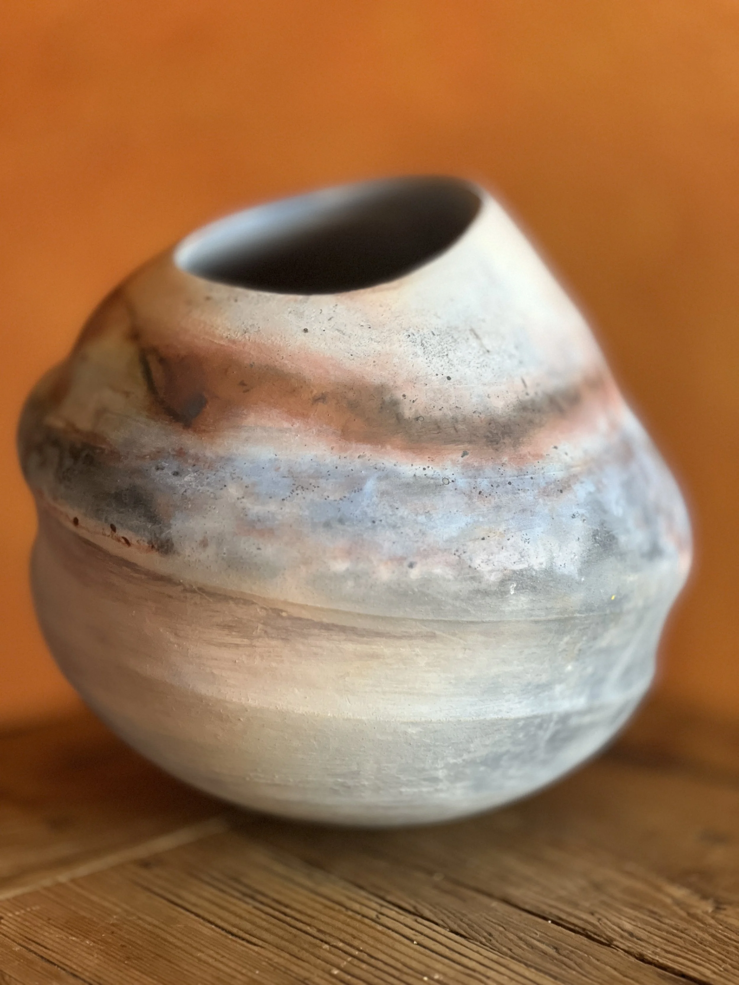 Angela Smith Kirkman is a ceramic artist with over thirty years of experience specializing in rustic dinnerware influenced by years of travel. She enjoys wild harvesting her own clay in the mountains of New Mexico and specializes in wood firing as well as saggar, raku, and gas reduction firing.